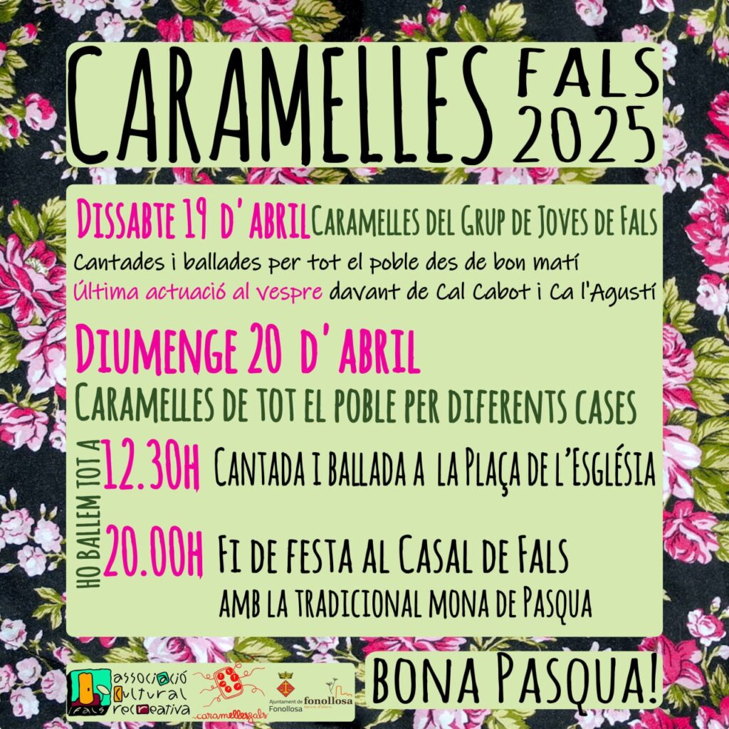 El diumenge 20 d’abril tot el grup de caramellaires de Fals farà les ballades i cantades més galants seguint els següent horari:
