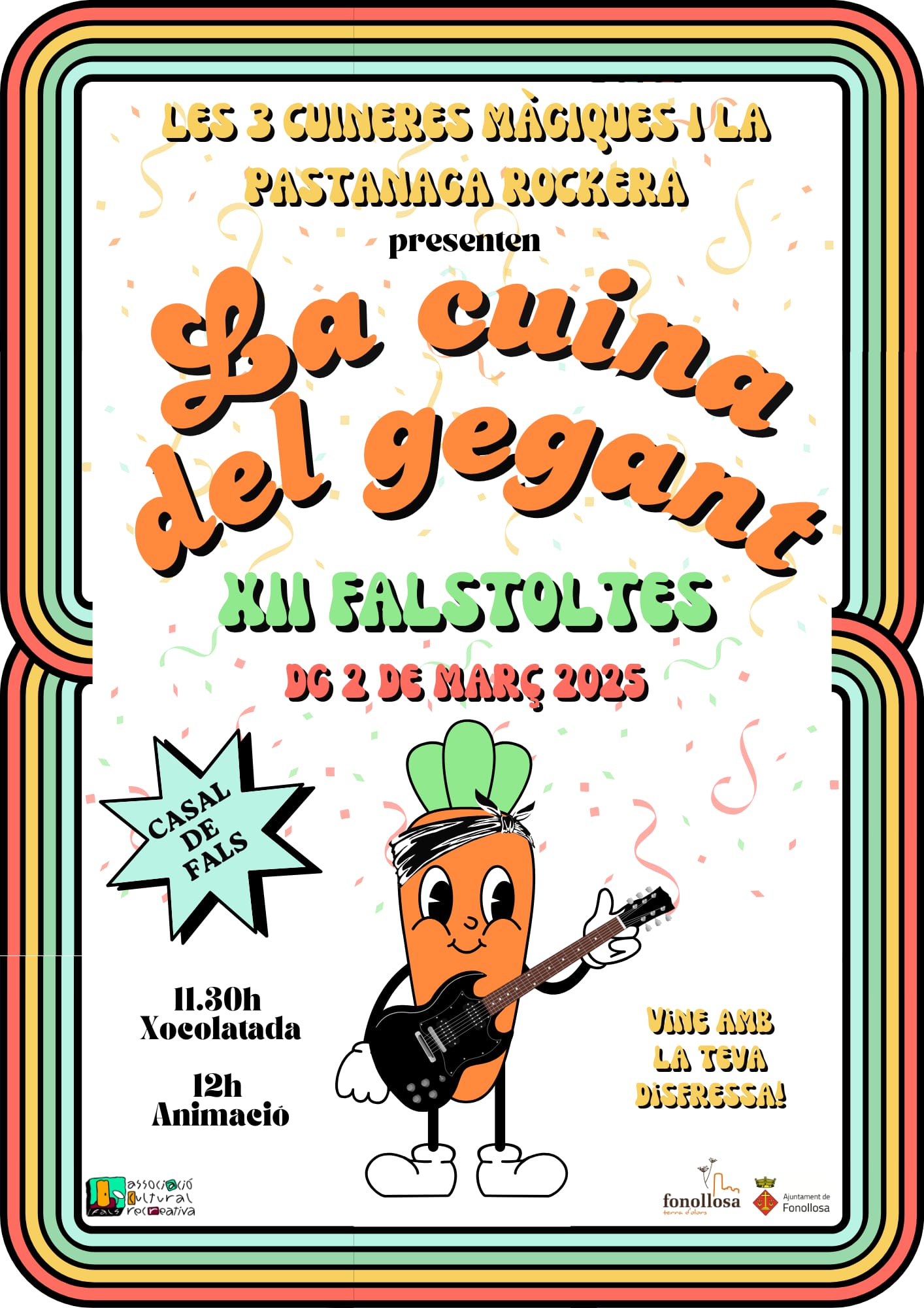 La 12a edició del Falstoltes, l’animació infantil de Carnestoltes de Fals, ve carregada d’estris de cuina, idees culinàries esbojarrades i moltes cançons danses i gresca! Serà el proper diumenge dia 2 de març a les 12 del migdia al Casal de Fals.