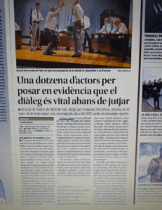Sempre s’ha alternat i fet tant teatre comercial, com reivindicatiu, històric o social. Quan va arribar la pandèmia del 2020, teníem una obra en curs i assajant una altra. Els assajos els fèiem per Skype, però en quant va ser possible vam sortir de nou, tot i les dificultats, amb els permisos pertinents.