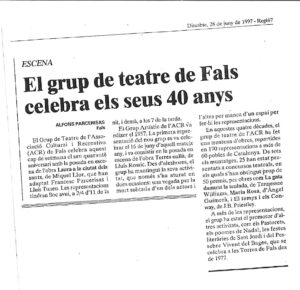 El Grup de Teatre de l’ACR de Fals està a prop de complir els 70 anys, en un moment de compromís global: en créixer i fer les coses millor que mai; la participació a Mostres, Concursos i els premis obtinguts, en donen fe.